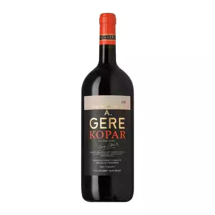 A Kopár Cuvée Gere Attila pincészetének egyik legismertebb bora, amely évről évre a villányi borvidék egyik csúcstételét képviseli. A 2021-es évjárat különösen elegáns és gazdag karakterrel bír, köszönhetően a válogatott Cabernet Franc, Merlot és Cabernet Sauvignon szőlőfajtáknak. A bor több mint egy évet érlelődött új tölgyfahordókban, ennek köszönhetően gazdag aromavilág és sima tanninszerkezet jellemzi. Illatában fekete szeder, meggy, vanília és szegfűszeg fonódik össze, háttérben enyhe ásványos és fűszeres jegyekkel. A korty telt, selymes és mély: érett sötét gyümölcsök, étcsokoládé, valamint finom pörkölt aromák jelennek meg. A hosszú, harmonikus lecsengésben kellemes fűszeresség és gyógynövényes frissesség zárja a bort. A Magnum méret nemcsak látványos, de lehetőséget ad a bor további palackos érlelésére is. Tökéletes választás különleges alkalmakra, steakhez, vadételekhez vagy érlelt sajtokhoz. A Gere Pincészet neve garancia a magas minőségre, hiszen több mint három évtizede képviselik Villány legjobbjait.