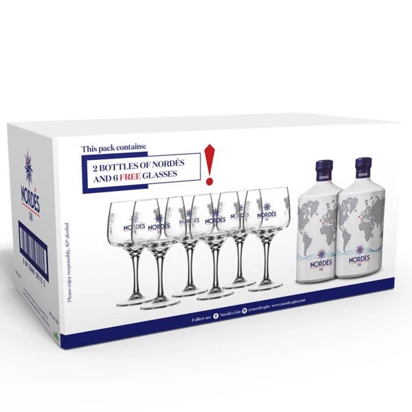 A Nordés Gin Spanyolország északi részéről, Galíciából származik, és nevét az Atlanti-óceán felől fújó friss északi szélről kapta, amely inspirálta karakterét. A díszdobozos csomag két 0,7 literes palackot és hat poharat tartalmaz, így tökéletes ajándék ginrajongók számára. A gin alapját az Albariño szőlő adja, amely édes-fanyar karaktert kölcsönöz az italnak. A 12 botanikai összetevő között megtalálható az eukaliptusz, citromverbéna és sziksófű, amelyek friss, tengeri hatású ízt eredményeznek. A Nordés Gin könnyed, lágy íze miatt ideális gintonikhoz vagy más frissítő koktélokhoz.