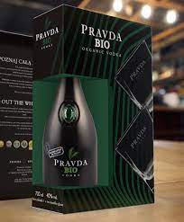 Pravda Bio Gift Set vodka 0,7l 40% + 2 square lowball pohár DD