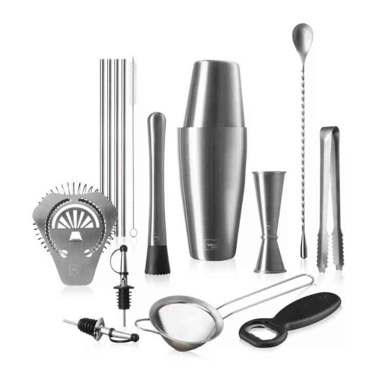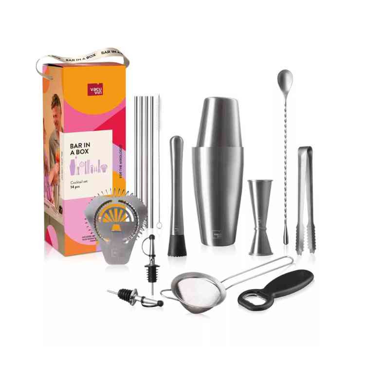 A Vacu Vin 14 darabos Koktél Szett egy prémium minőségű, teljes körű koktélkészítő készlet, amely ideális választás azok számára, akik otthon szeretnének mesteri koktélokat készíteni. A rozsdamentes acélból készült eszközöket professzionális bartenderek bevonásával tervezték, így garantálják a kényelmes és precíz használatot.