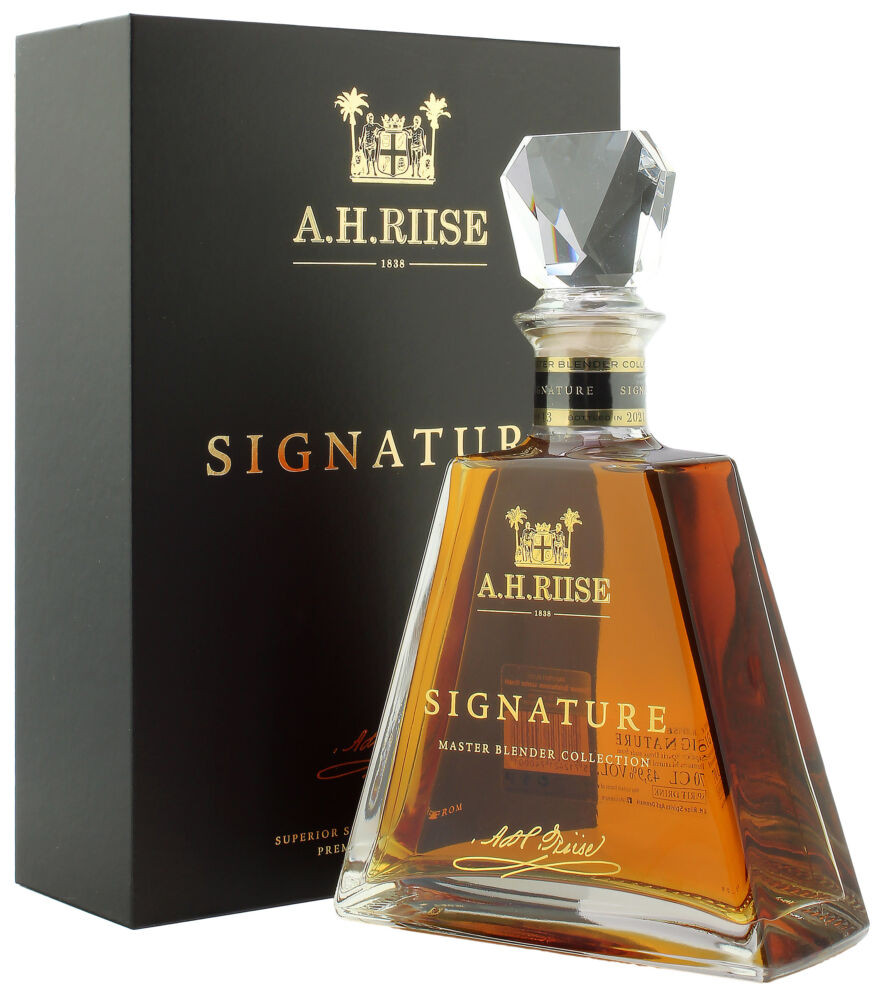Az A.H. Riise lepárló a St. Thomas-szigeten található, amely egy amerikai Virgin-sziget a Karib-térségben. Mielőtt ez a sziget amerikai terület lett, dán gyarmat volt. Albert Heinrich gyógyszerész az 1840-es évek táján nemcsak gyógyszertárat nyithatott, hanem alkoholt is gyárthatott. Az A.H. Riise SIGNATURE Master Blender kollekció egyedülálló. Minden üveg alatt a Master Blender neve található. Mindegyik kiadásból kevesebb mint 2000 palack van. A gyártás során a legkülönbözőbb hordókból származó, különböző eredetű, különböző érettségi fokozatú legjobb rumokat használják fel. A hordók nem ürülnek ki teljesen – az utolsó maradék a hordóban marad, és különleges ízt ad a keveréknek.