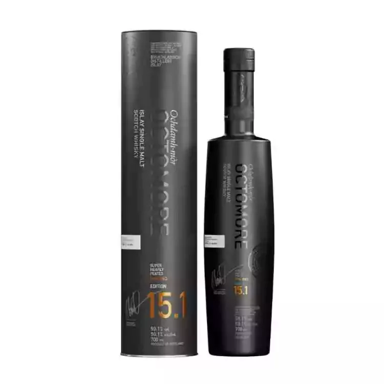A Bruichladdich Octomore 15.1 az Islay szigetén található Bruichladdich lepárló egyik legkarakteresebb kiadása. Ez a rendkívül erősen tőzegelt whisky 108,2 ppm fenoltartalommal rendelkezik, ami a világ legfüstösebb whiskyei közé emeli. A 2018-ban lepárolt ital 100%-ban skót Concerto árpából készült, és öt évig érlelték első töltésű bourbon és újrapörkölt hordókban, hogy gazdag, komplex ízvilágot kapjon.